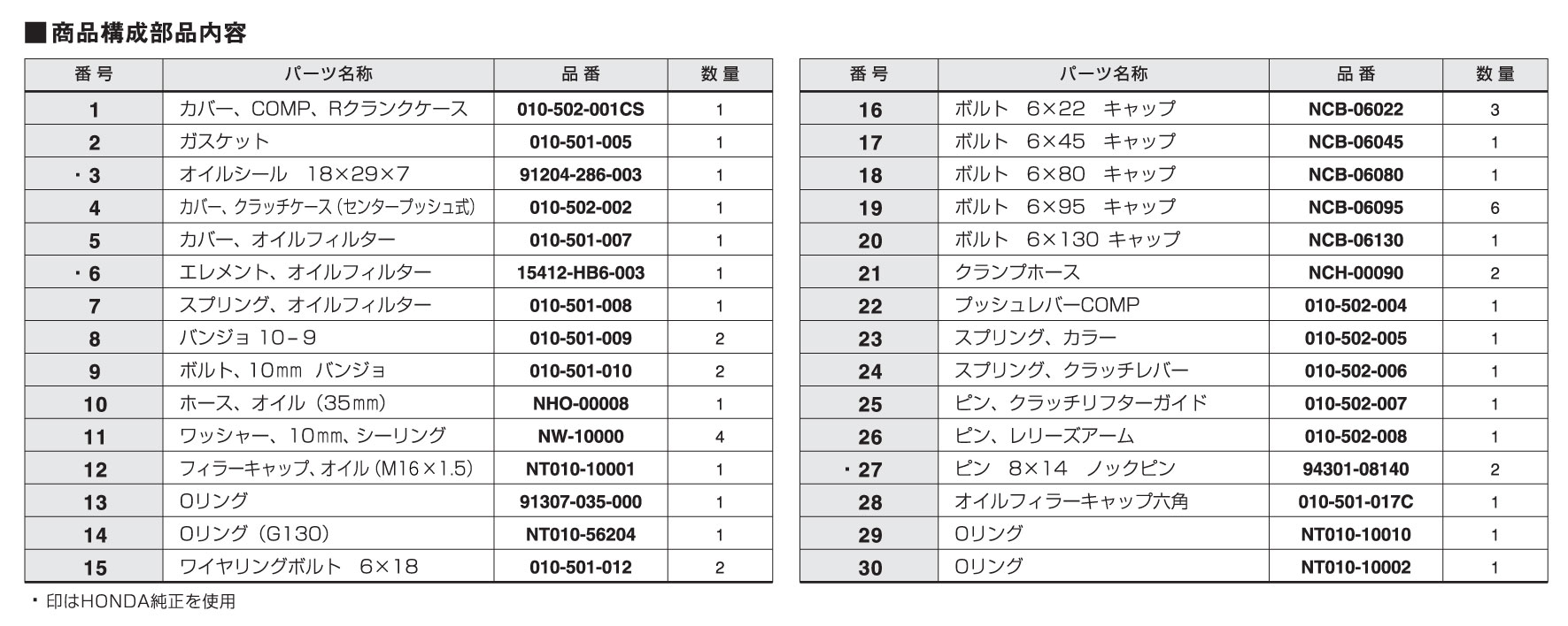 ※ NSF100へ装着の際は下記HONDA純正部品( 注1 )4パーツが必要になります。別途ご用意下さい。キット内には付属しておりません。